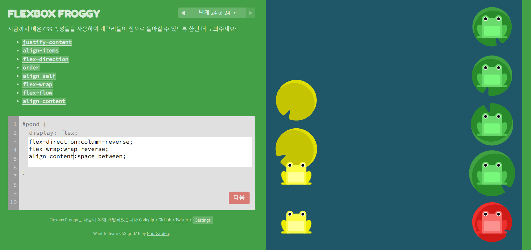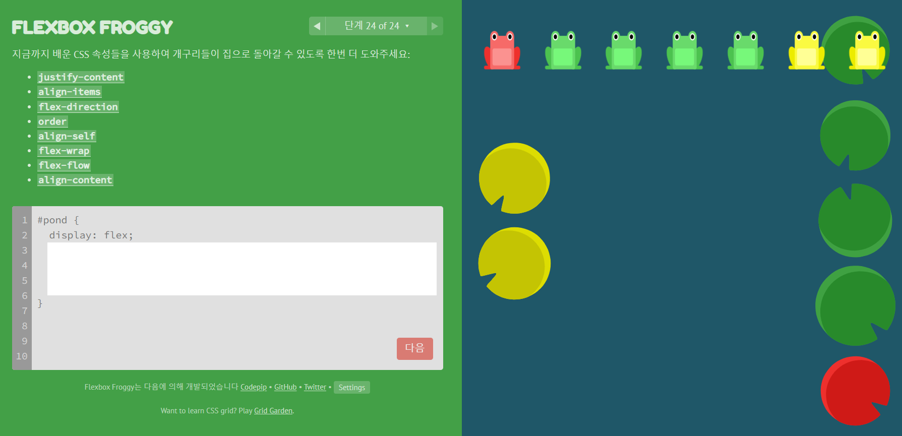 Flexbox Froggy - CSS flexbox 속성 배우기 게임