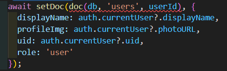 setDoc을 통해서 Firebase에 user 정보를 저장하려고 했었다