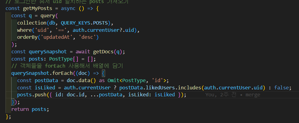 그래서 처음에는 쿼리 키로 데이터를 가져올 때, uid가 일치하는 것만 가져와서 오름차순으로 정렬을 했었다.