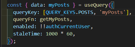 또한 나는 staleTime도 1분으로 설정해놓았다.