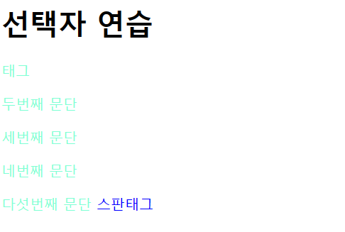color: aquamarine; // h1 뒤에 오는 모든 p 요소 선택