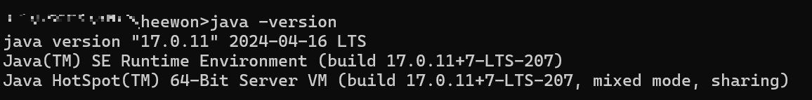 또 다른 오류 발생 .. 분명 위에선 버전 17로 잘 나왔는데 왜 11로 떴을까 ..