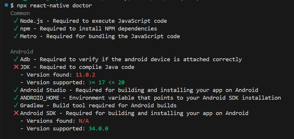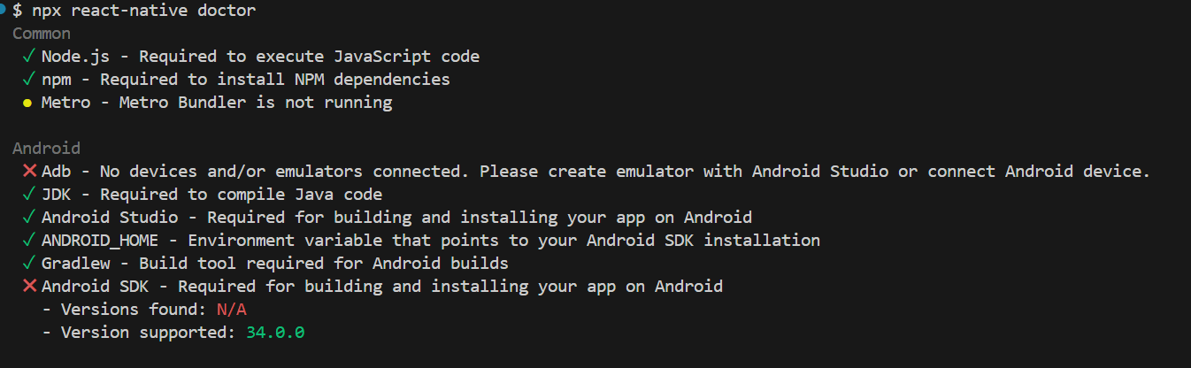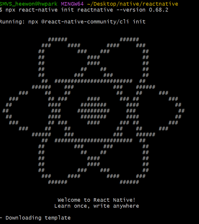 - react-native-cli 대신 이제는 npx react-native를 사용하는 것이 권장된다고 한다. react-native-cli 패키지는 더 이상 업데이트되지 않으며, 대신 npx react-native를 사용해 React Native 명령을 실행하는 것이 더 안정적이다