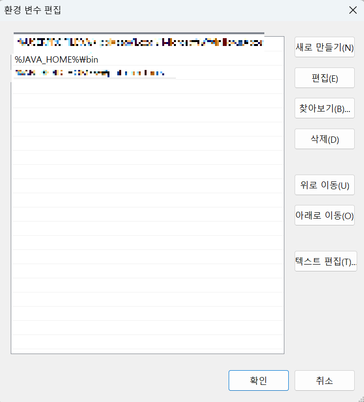 2. 사용자 변수 Path 편집 > 새로만들기 > '%JAVA_HOME%\bin' 추가