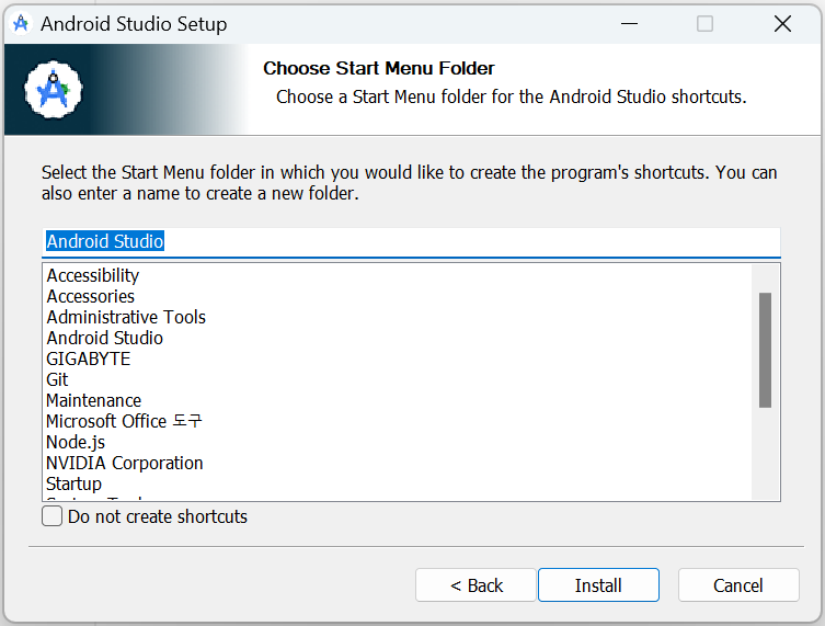 아래의 사이트에서 안드로이드 스튜디오를 설치한다 (중간 쯤에 위치해있음)