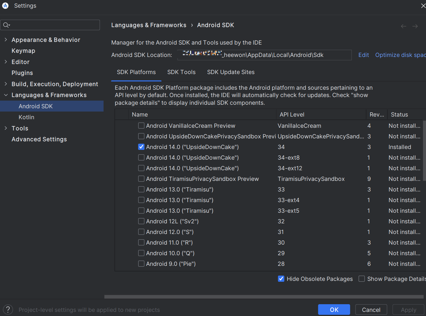 맨 밑 Android SDK 오류는 수도 없이 검색해봤지만 도저히 잘 모르겠다..ㅜㅜ