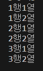 자바스크립트 중첩 for문 예제 문제1. 1행1열부터 3행2열까지 출력 결과 문제2. 구구단 2단부터 9단까지 출...