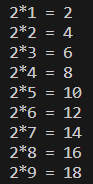 console.log(gugu + "*" + c + "=" + gugu*c)