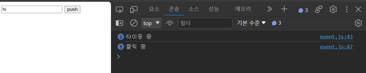 "hi"를 입력했더니 2개의 onkeydown 이벤트,