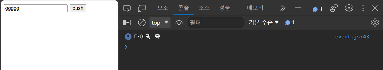 console.log("타이핑 중")