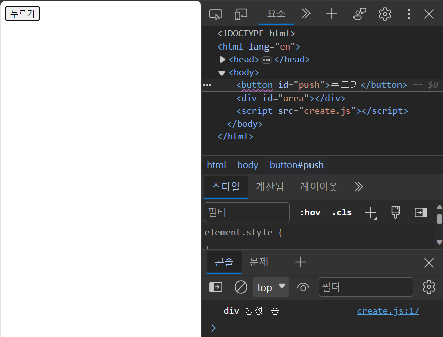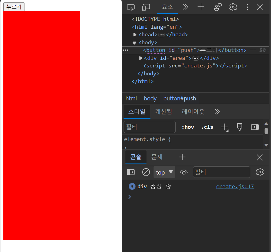 const newDiv = document.createElement("div") // 생성만 됐을 뿐 dom에는 따로 추가가 되지 않기 때문에