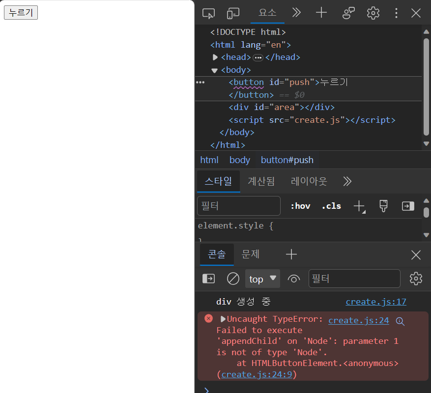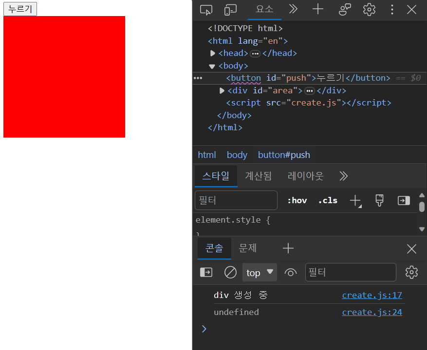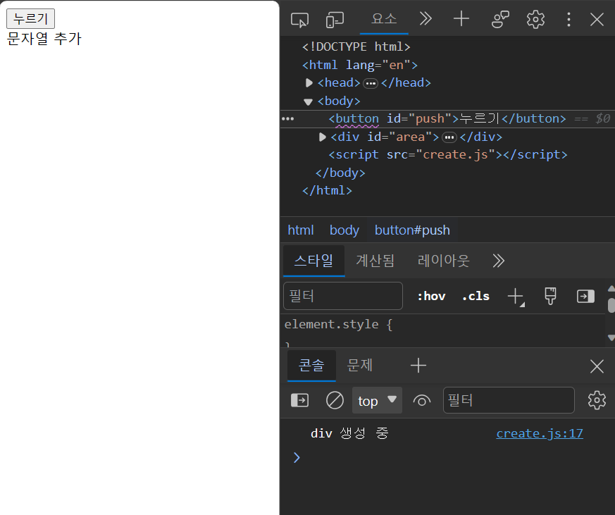div.appendChild(newDiv) // appendChild를 사용하여 dom내에 추가될 수 있도록 해준다