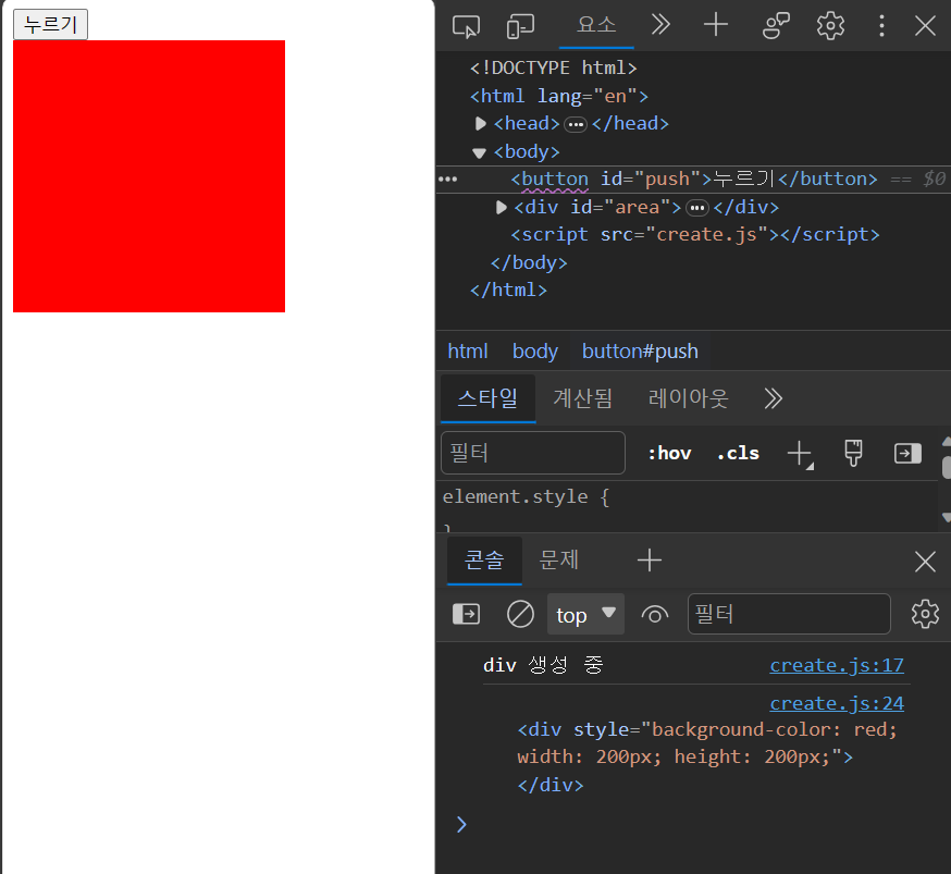 newDiv.style.backgroundColor = "red" // 주의할 점: backgroun-color 사용 ㄴㄴ, 연산자로 인식