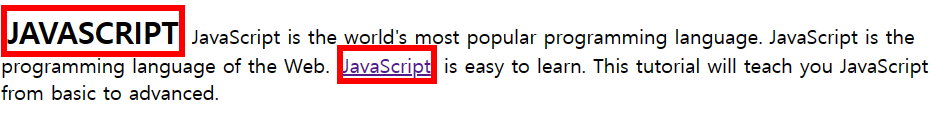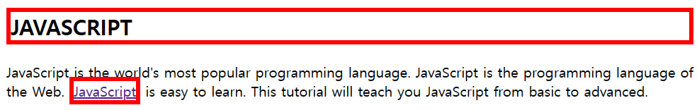 <h2>는 화면 전체를 쓰는 것을, <a>는 콘텐츠 크키만큼 쓰는 것을 알 수 있다.
