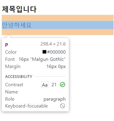 그리고 <h3>는 제목임을 강조하는 성격으로 글자가 더욱 진하게 적용된다