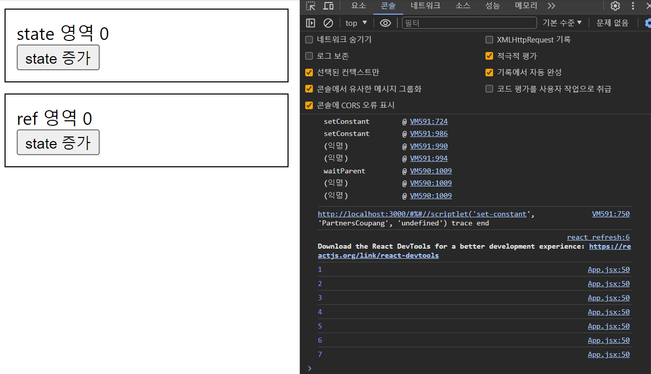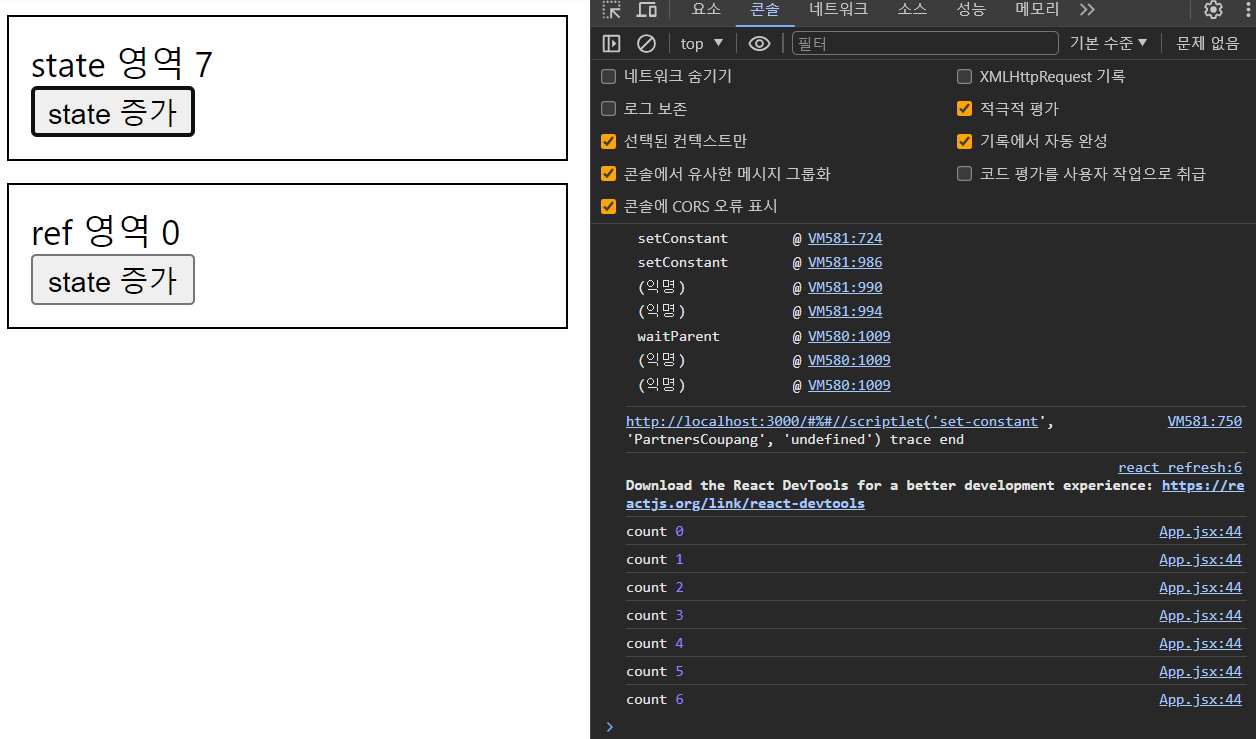 <button onClick={refCountButtonHandler}>state 증가</button>
