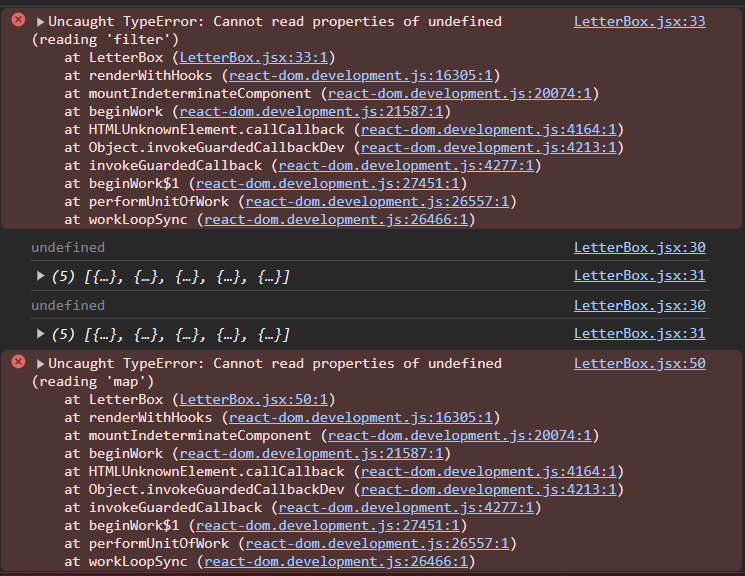 각 컴포넌트 파일에서 그 배열을 찍어보면 오류 없이 잘 나오는 것도 문제였다