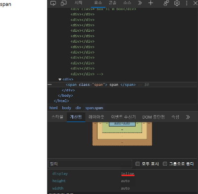 대표적인 inline 태그인 span태그의 속성을 개발자도구에서 확인해보면