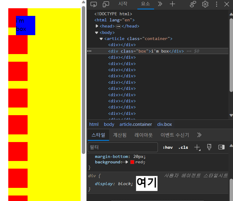 ex) 파란 박스를 오른쪽 하단에 위치시키고 싶다면