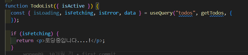 isFetching은 데이터가 처음 로드될 때뿐만 아니라 데이터가 업데이트되거나 재요청될 때도 true이기 때문에