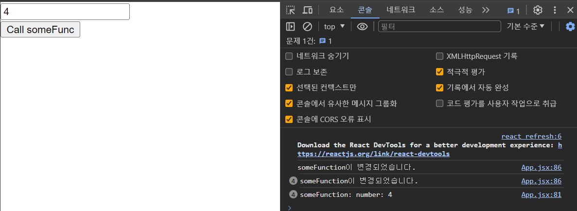 someFunction에 useEffect를 주었는데도 input의 값을 변경했더니 콘솔창에 찍히는 걸 확인할 수 있다
